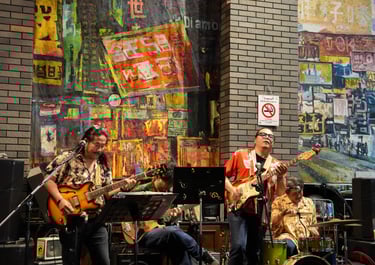 Inside the foyer, an Asian rock band was performing live when I passed through — adding another layer to the atmosphere of the neighborhood.