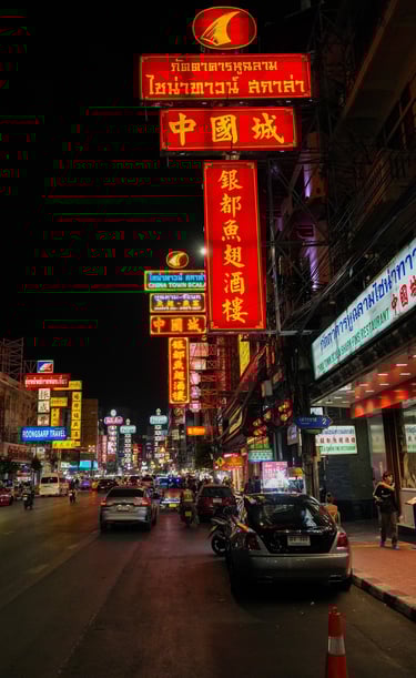 When the sun sets over Bangkok, one part of the city begins to glow in a very different way: Yaowarat Road, the beating heart of Chinatown, Bangkok.