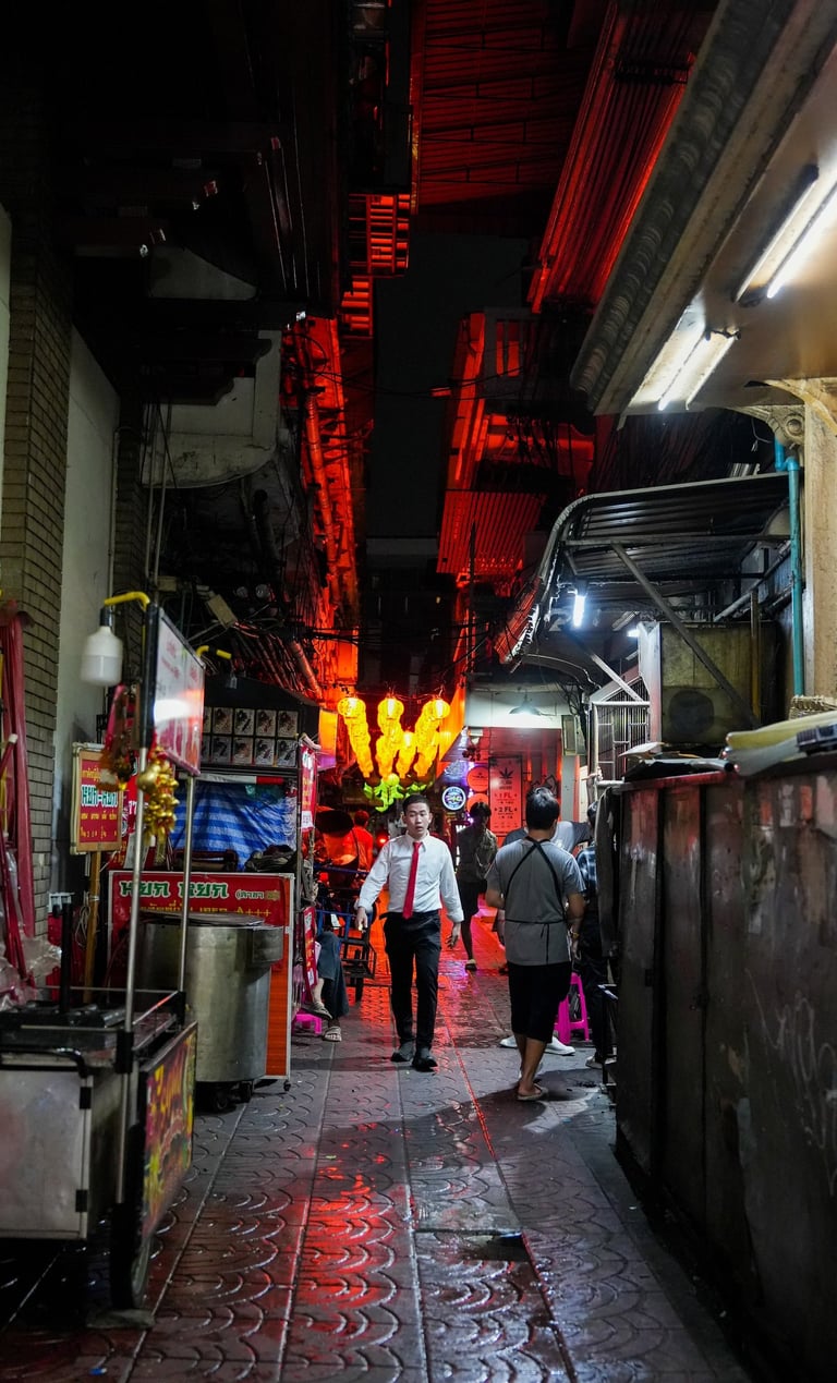 Moments like that are exactly why documentary street photography works so well in this part of Bangkok. The city writes its own stories — you just need to be there with the camera.