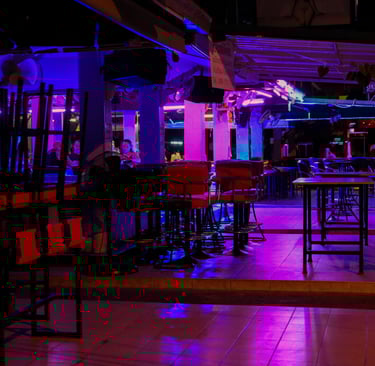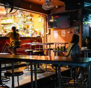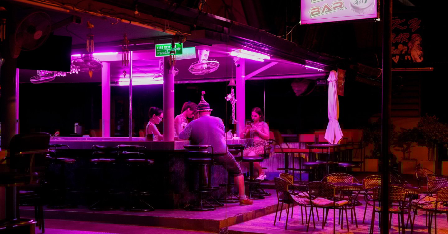 One guy sat at an open-air bar playing a game of Connect Four with three bar ladies, laughing softly while the rest of the street started to fade into silence.