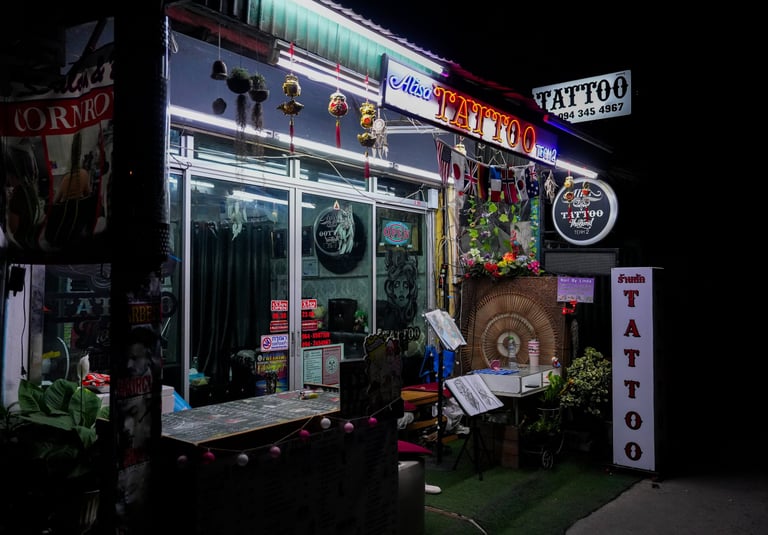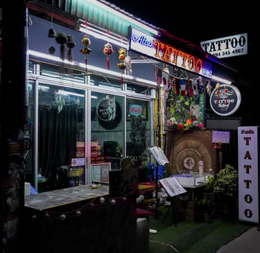Taking a small detour through Soi 7 and Soi 8 — both well-known and somewhat infamous entertainment streets — I passed by a few quiet bars and even a small tattoo studio, still dimly lit in the early morning hours.