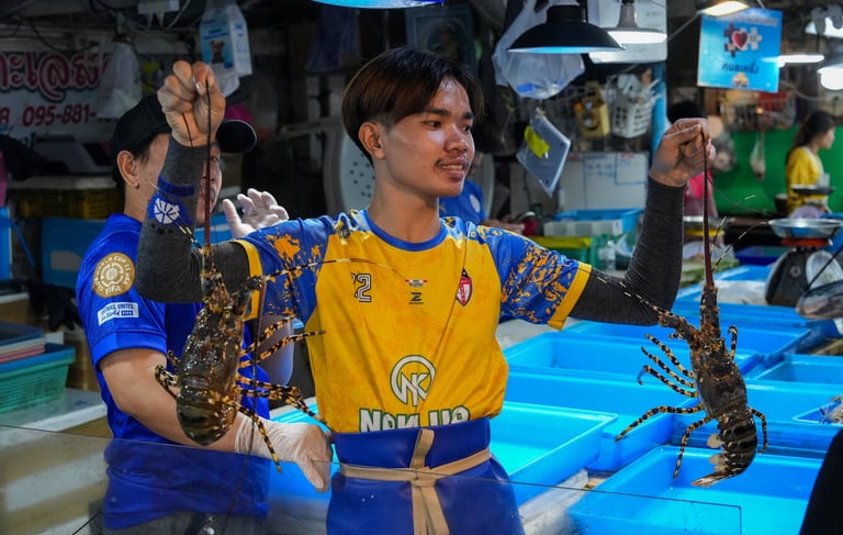This moment was captured at the Lan Pho Na Kluea Market, a lively local fish market in Pattaya, Thailand.