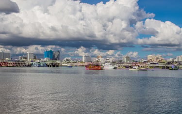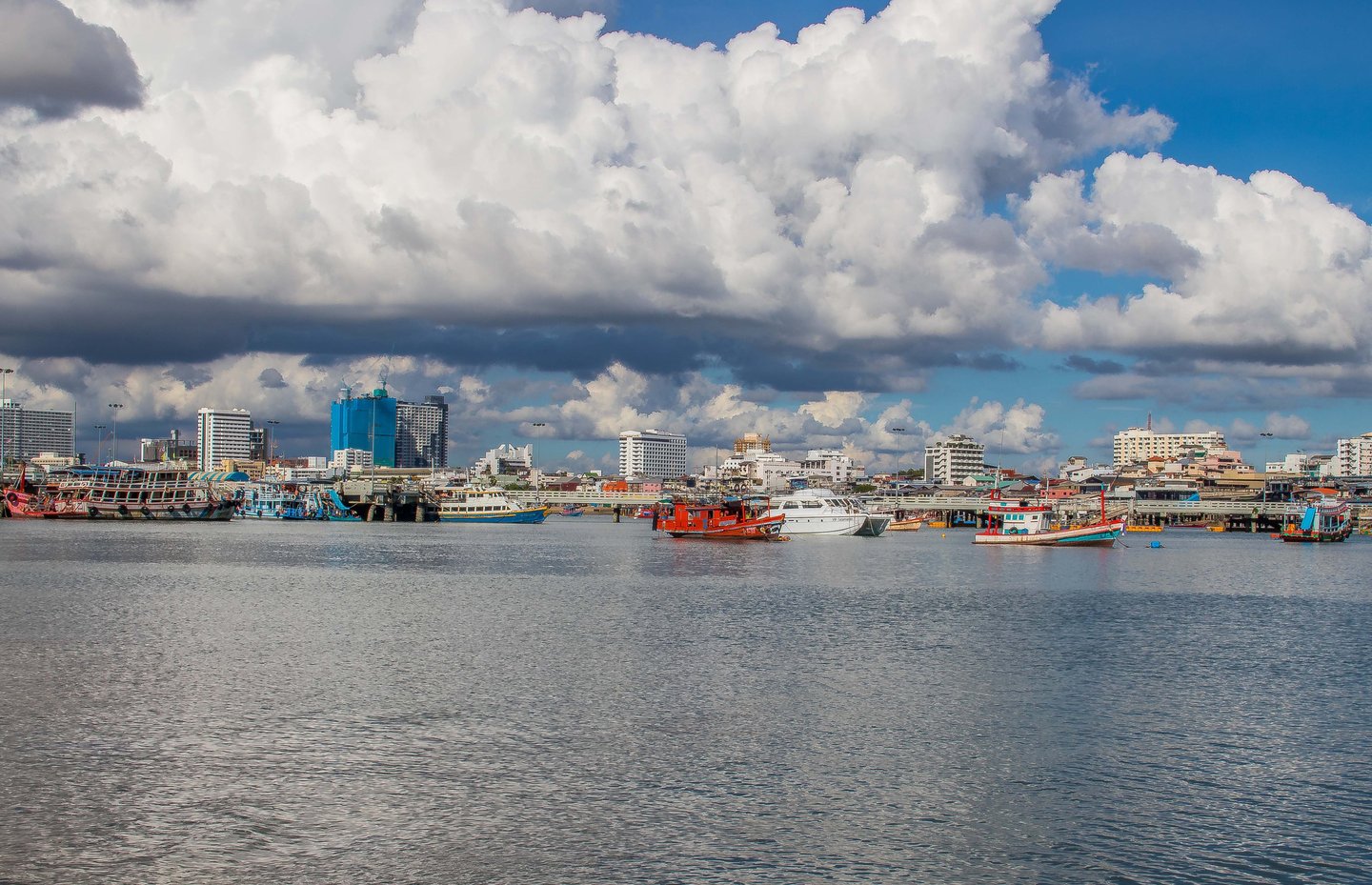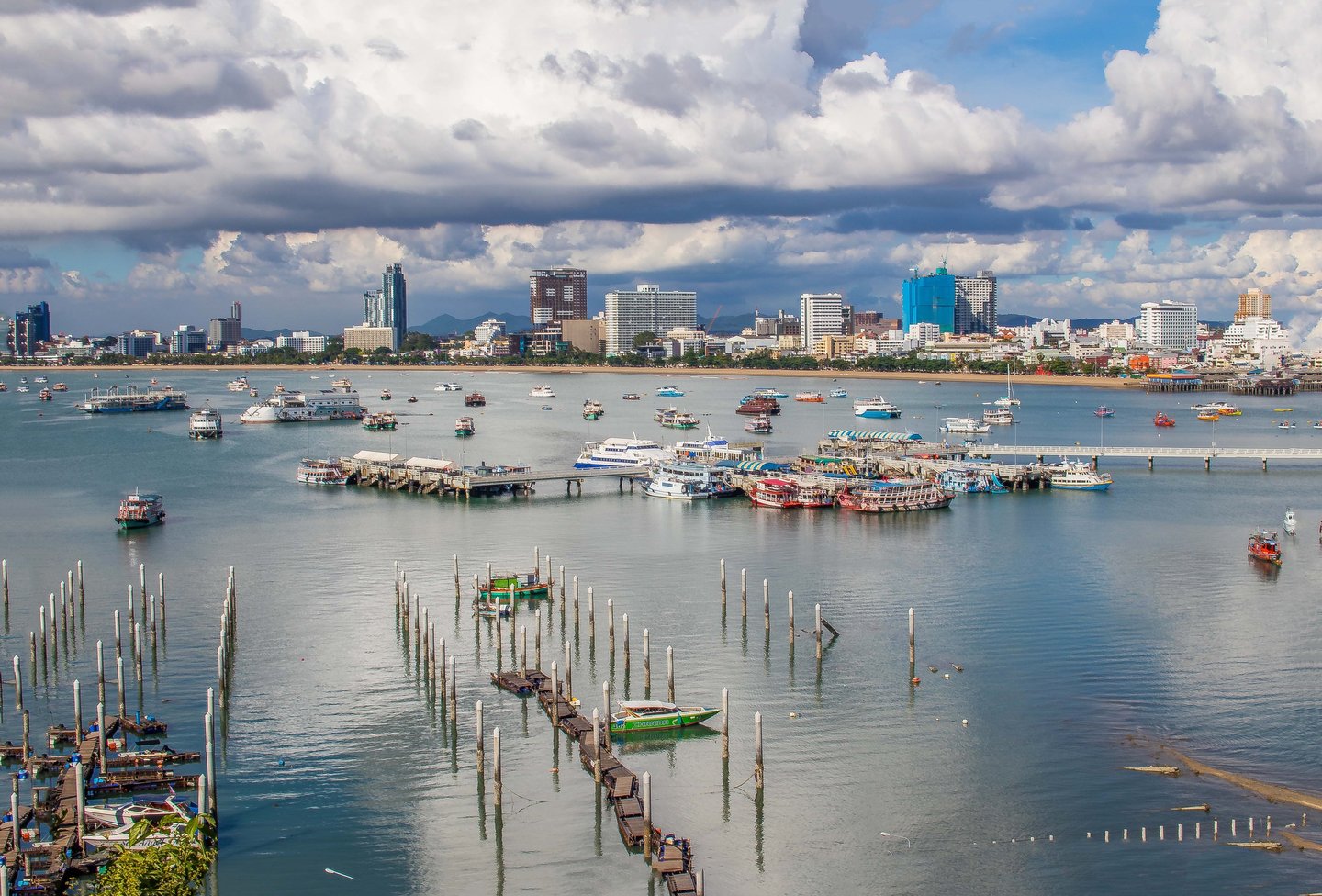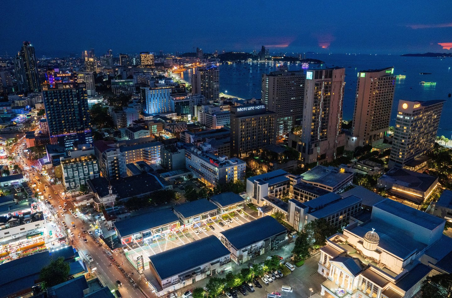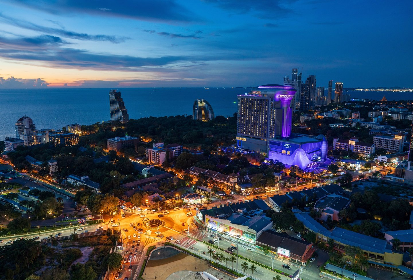 What many people see only as a nightlife destination becomes something else: a coastal city with a dynamic skyline, vibrant harbor activity, and dramatic evening light over the Gulf of Thailand.