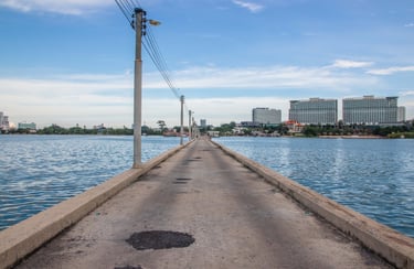 📷 Character: The structure resembles a large open platform or pier with Buddhist architectural elements, rather than a traditional temple — and that’s what makes it visually so compelling.