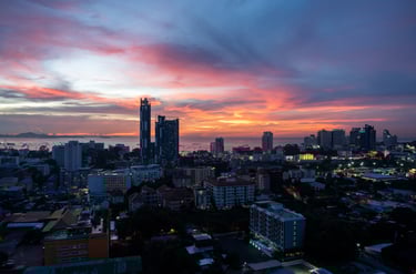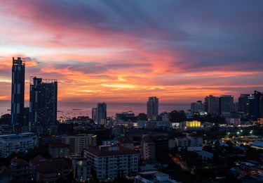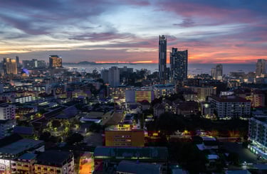 But if you take the time to look at the city from above, Pattaya reveals a completely different side — a skyline shaped by the Gulf of Thailand, modern high-rise architecture, and spectacular sunsets over the bay.