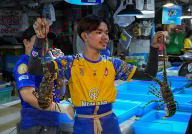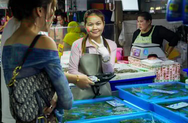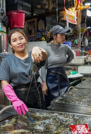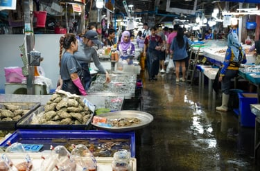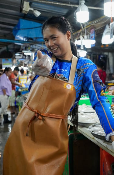 This moment was captured at the Lan Pho Na Kluea Market, a lively local fish market in Pattaya, Thailand.